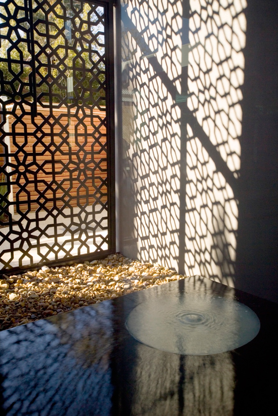 The space is enclosed by privacy screens that cast delicate shadows moving with the passing of the day.